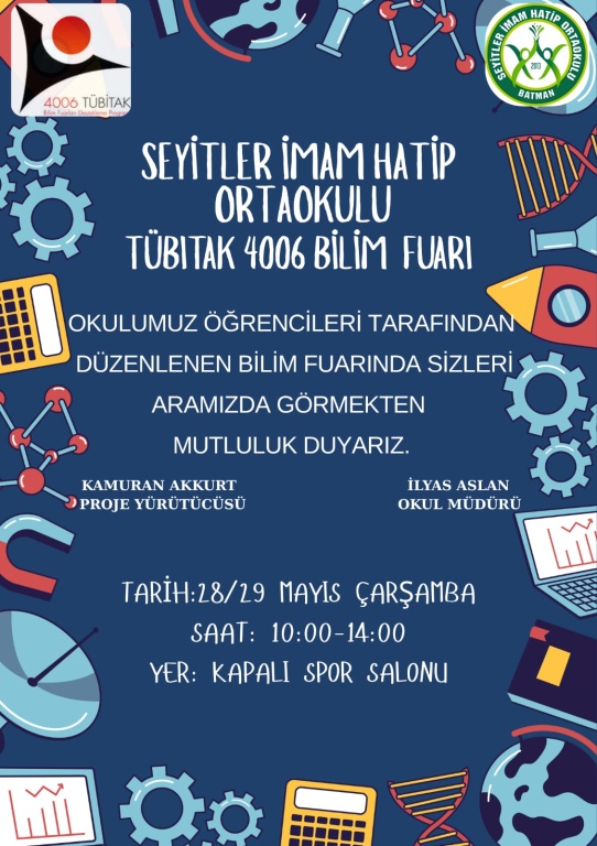 28.05.2025 ÇARŞAMBA GÜNÜ OKULUMUZDA TÜBİTAK 4006 BİLİM FUARI YAPILACAKTIR. SAAT 10.00 DA BAŞLAYACAK FUARDA SİZLERİ ARAMIZDA GÖRMEKTEN MUTLULUK DUYARIZ.